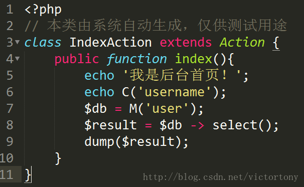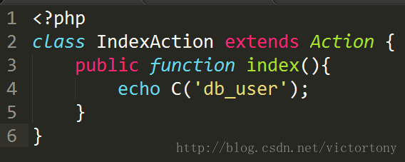 然后我们在创建的前台项目的控制器中(前台项目/Lib/Action/IndexAction),index方法写入如下代码: