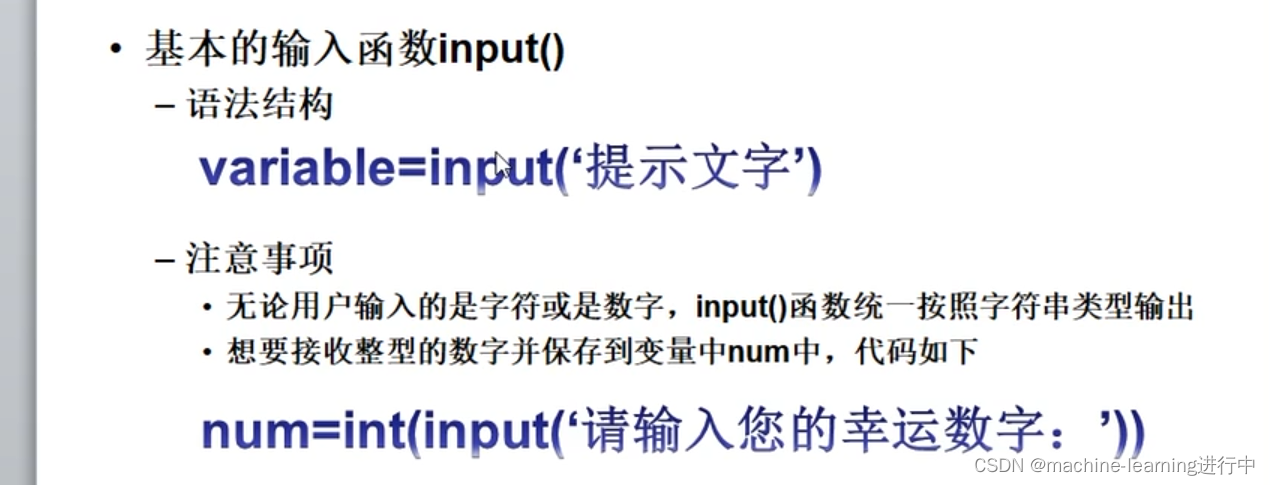 需要注意基本语法结构;input()函数统一按照字符串类型输出