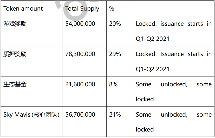 Sky Mavis是Axie Infinity背后的团队,在代币销售成功后,应该继续激励他们继续建设。通过锁定大部分已分配的供应,团队、社区和投资者具有一致的激励措施。