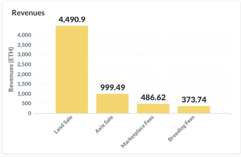Axie Infinity 生态系统在 Axie 销售、土地销售、育种费用和市场费用方面产生了超过 6000 ETH 的收入。