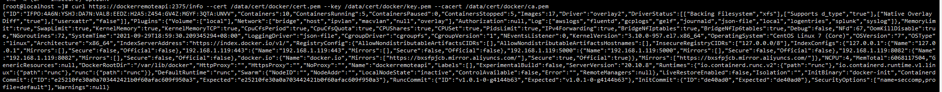 curl https://dockerremoteapi:2375/info --cert /data/cert/docker/cert.pem --key /data/cert/docker/key.pem --cacert /data/cert/docker/ca.pem
