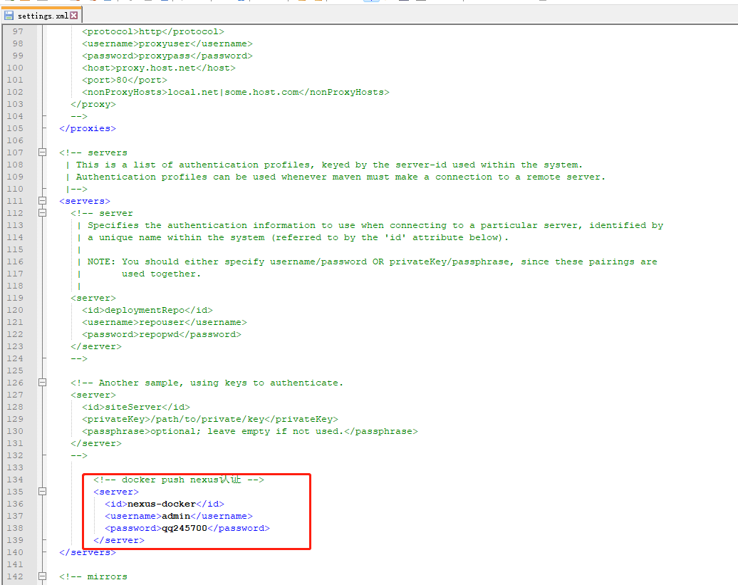 <!--docker登录nexus秘钥配置(在maven的配置文件中的server标签内)-->