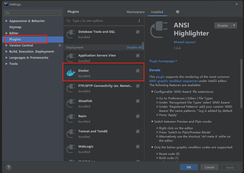 在编写Dockerfile之前,先给idea装上docker插件,必须要装