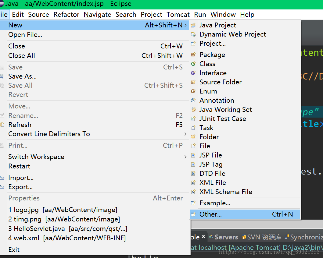 1、 在工具栏中找到File-》new-》Dynamic Web Project