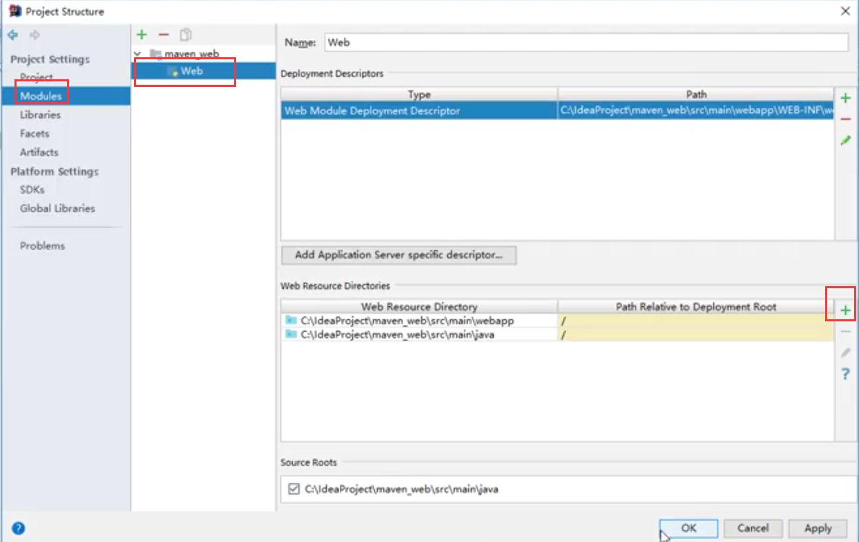 在右侧增加web资源包路径