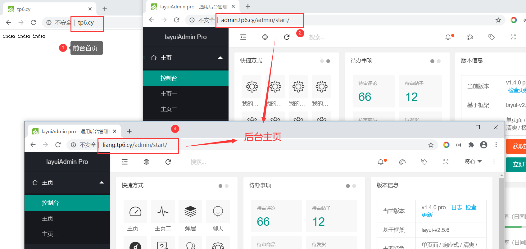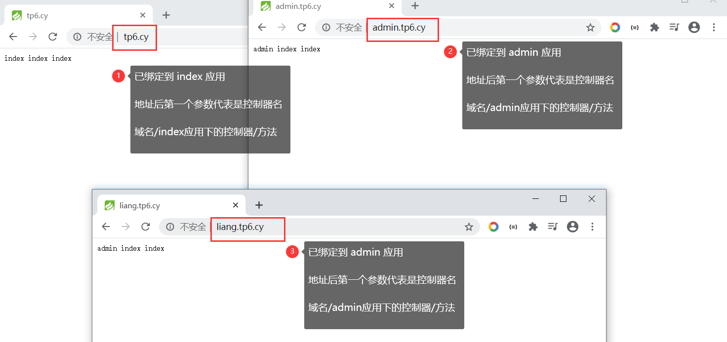 此时 tp6.cy 绑定到了 index应用,liang.tp6.cy admin.tp6.cy 绑定到了 admin应用