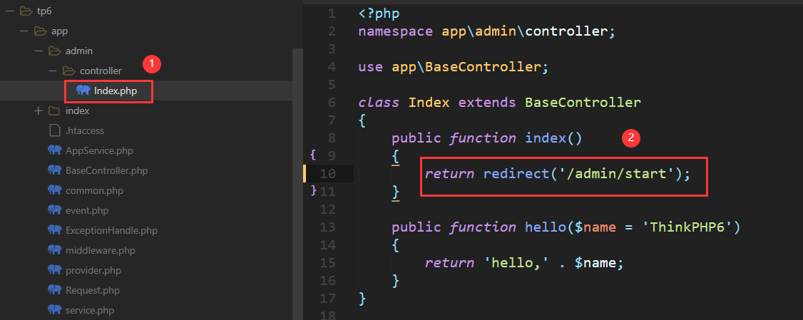 7. admin应用index控制器的index方法重定向到layuiadmin宿主页面