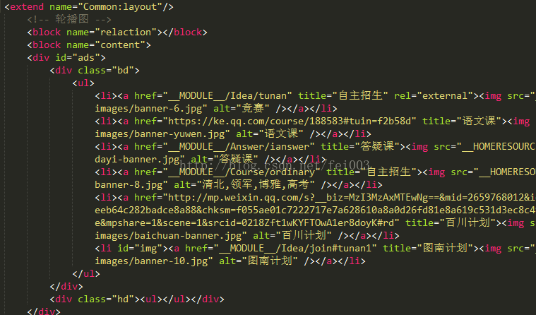 如下图,在另外页面我直接extend就ok了,当然文件路径一定要正确,需要改写的部分一定要写在页面中
