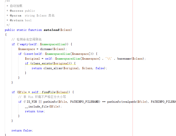 ②、然后我们来看下tp5的自动加载时怎么实现的,差不多就比较清楚这个自动加载了。