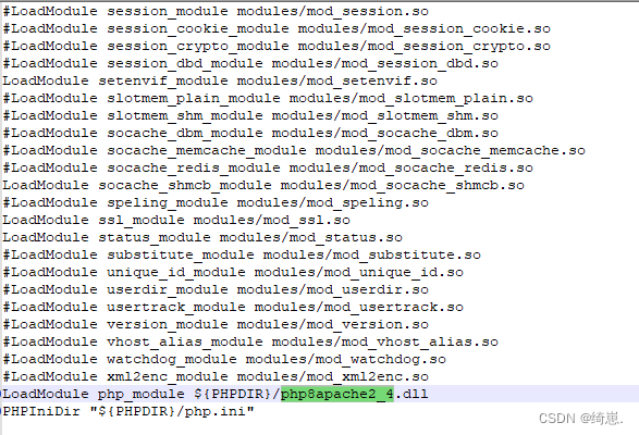注意:我这是php8apache2_4.dll的,你要知道你是不是的话,就得去php文件夹内找有没有php8apache2_4.dll