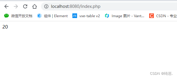 在localhost:80/index.php看会不会显示20,我这是8080端口号