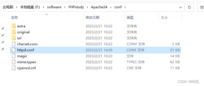1. 改后:Define SRVROOT "F:softwarePHPstudyApache24" #第一二行是绝对路径