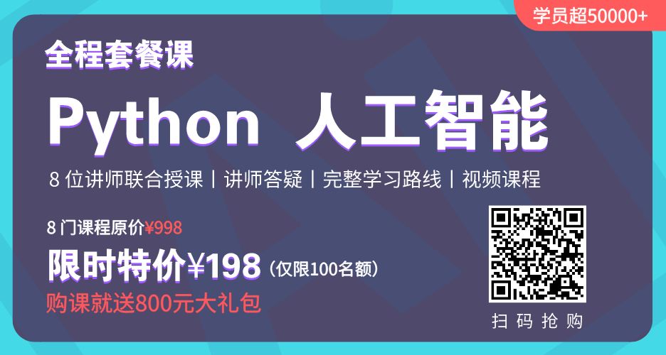 所以 CSDN 特意加大优惠力度!推出限时秒杀好课:《Python 人工智能全程套餐课》让你0基础,通过正确的学习路径,轻松入门人工智能!同时为了减少大家的购买成本,今日立减 800 元!