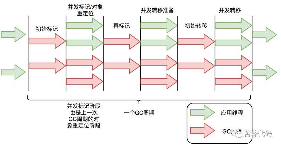 与CMS中的ParNew和G1类似,ZGC也采用标记-复制算法,不过ZGC对该算法做了重大改进:ZGC在标记、转移和重定位阶段几乎都是并发的,这是ZGC实现停顿时间小于10ms目标的最关键原因。
