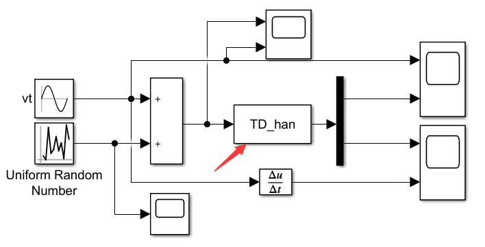 由于韩教授提出的非线性微分跟踪器是离散的,且被控对象常常使用simulink建模连续系统,所以这里介绍三种TD建模方式:①采用纯m语言建模(编写在Function模块种);②Function模块定义最速综合函数f+simulink结合unit delay建模;③s函数编写TD微分跟踪器。