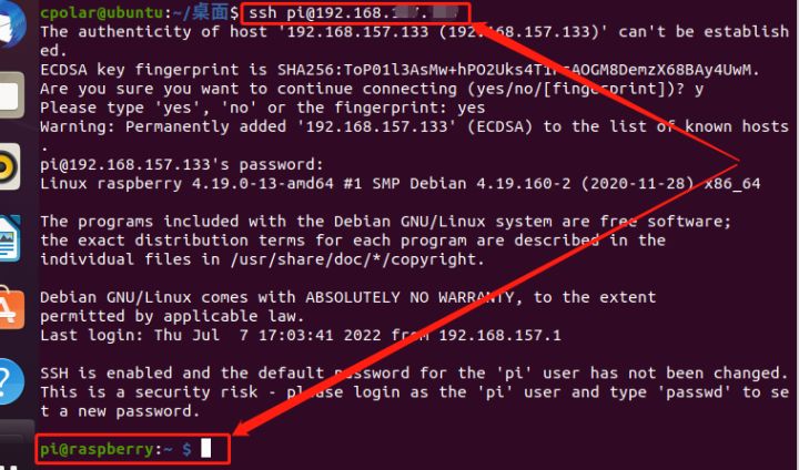 上面的PuTTY连接方法适用于Windows系列,对于Ubuntu系统和Mac OS,由于其自带了SSH软件(树莓派系统也改良自linux),因此我们只需要在命令行界面中直接输入命令