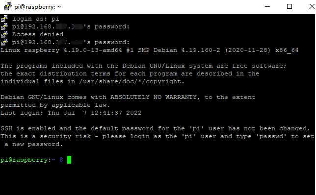 ssh pi@树莓派的IP地址