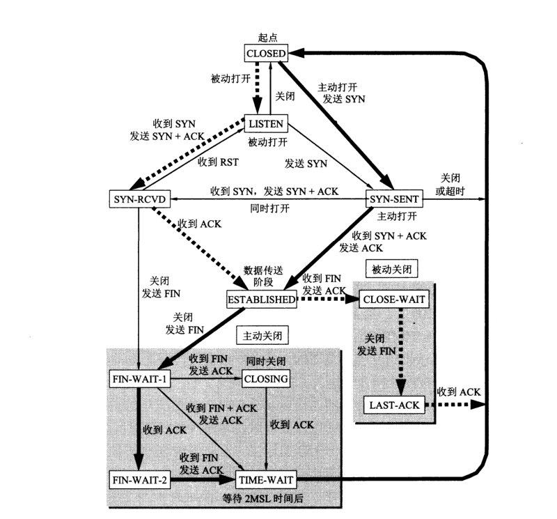 - 服务器只要收到了客户端发出的确认,立即进入CLOSED状态。同样,撤销TCB后,就结束了这次的TCP连接。可以看到,服务器结束TCP连接的时间要比客户端早一些。