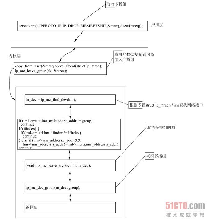 | (点击查看大图)图11.9 选项IP_DROP_MEMBERSHIP的内核处理过程 |
