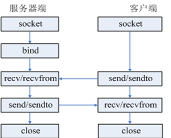 服务端:socket---bind---listen---while(True){---accept----recv---send---}---close