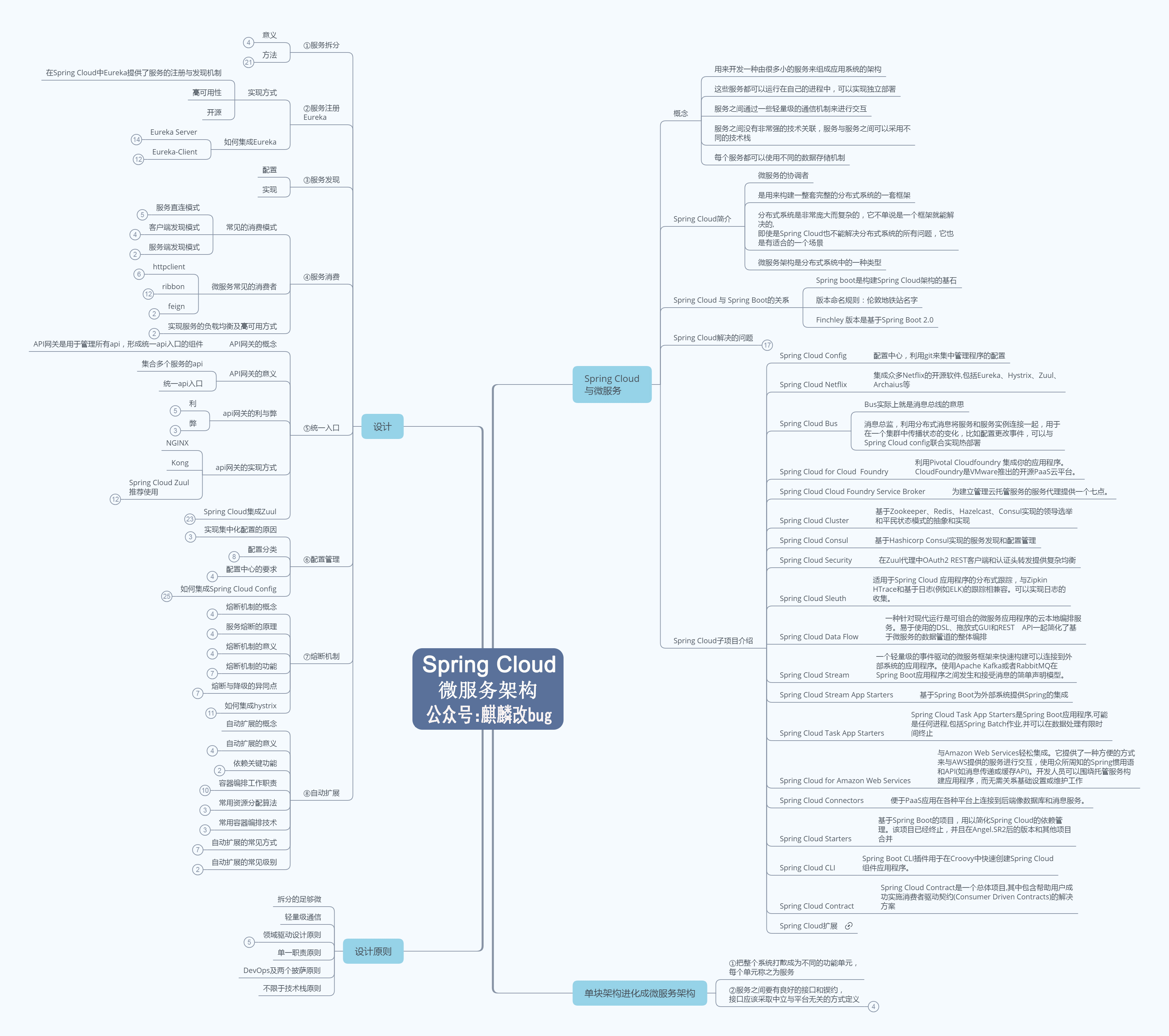 关于Spring Cloud微服务架构的知识总结了个思维导图分享给大家