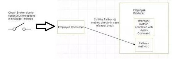 如果 firstPage method() 中的异常继续发生,则 Hystrix 电路将中断,并且员工使用者将一起跳过 firtsPage 方法,并直接调用回退方法。 断路器的目的是给第一页方法或第一页方法可能调用的其他方法留出时间,并导致异常恢复。可能发生的情况是,在负载较小的情况下,导致异常的问题有更好的恢复机会 。