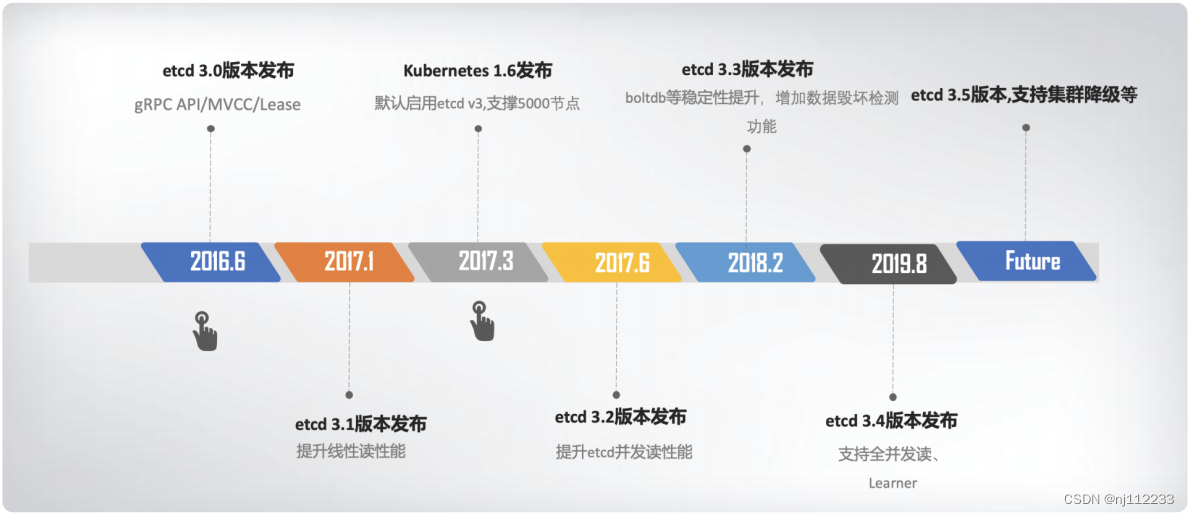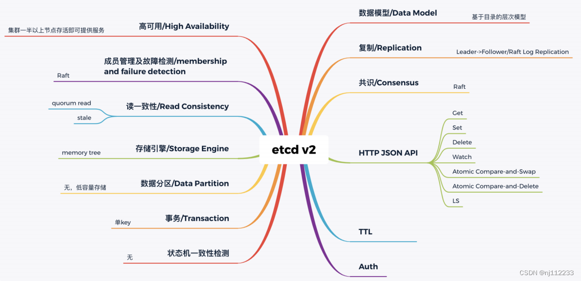 etcd 为什么有 v2 和 v3 两个大版本,etcd 如何从 HTTP/1.x API 到 gRPC API、单版本数据库到多版本数据库、内存树到 boltdb、TTL 到 Lease、单 key 原子更新到支持多 key 事务的演进过程有个清晰了解。