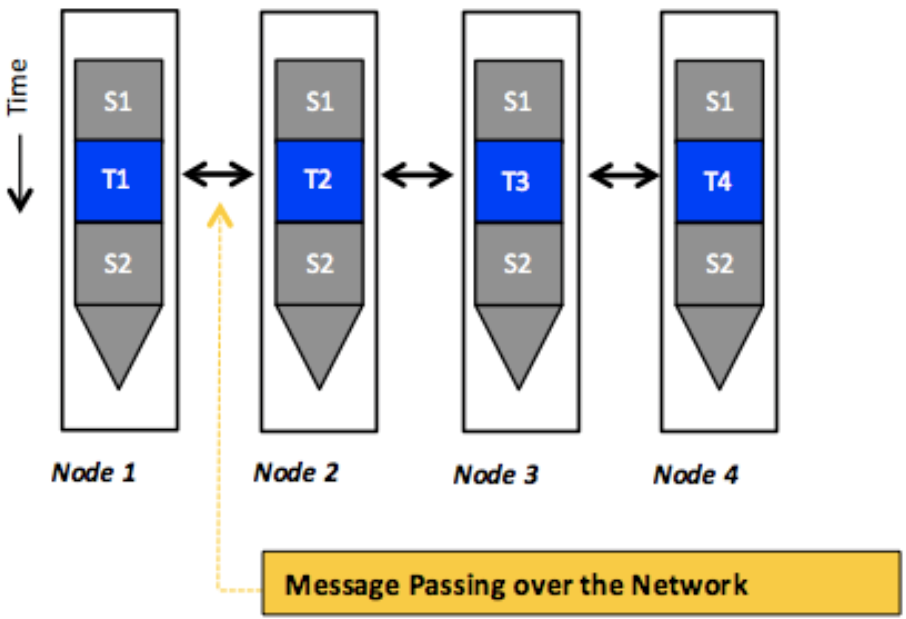 - To send and receive data via explicit messages, this model incurs communication overheads