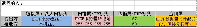 2. DHCP处理请求,分配IP,返回“DHCP响应”的数据包