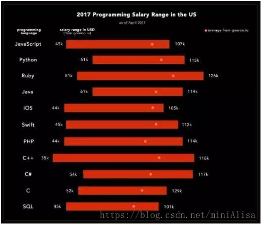 对我而言我认为如果我所学的不能给我带来最大的收益,不能给我想要的结果,那我为什么要去花时间、精力甚至是金钱去学呢?下面就是不同编程语言平均薪资表,可以参照一下。