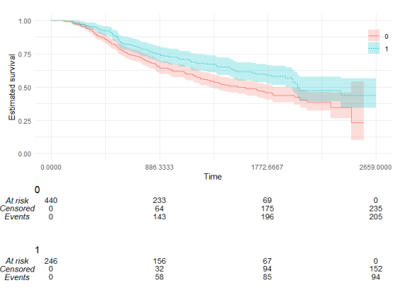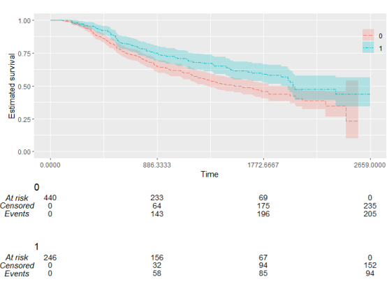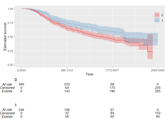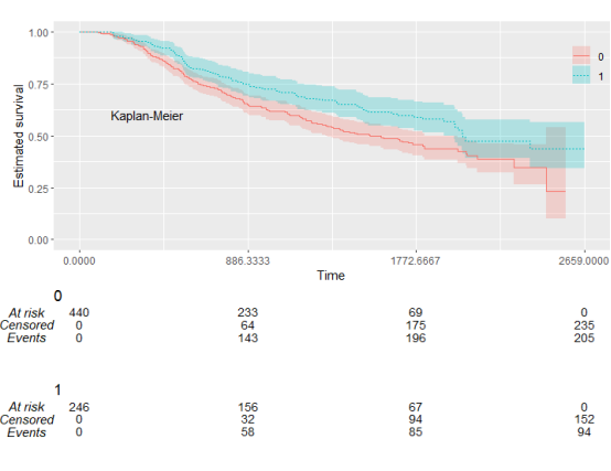 如果 survfit 对象中有协变量,将自动生成Multiple-Arms plot。
