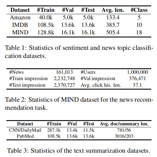 为了证明本文方法在多个任务上都是有用的,作者在5个数据集上进行了实验,数据集的细节如上表所示。
