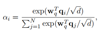 因此,作者首先使用加性注意将query矩阵汇总为一个全局query向量 ,它将query的全局上下文信息进行压缩。更具体地说,第i个query向量的注意权值 计算如下: