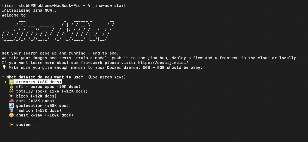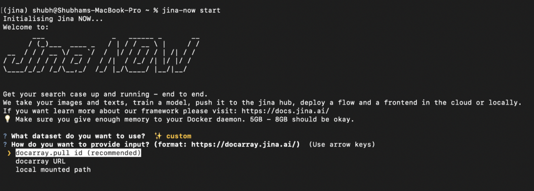 注意:请使用 Python 3.7+;截至目前 Jina NOW 仅支持文本及图片两种数据类型,后续版本中将不断丰富支持的数据类型。