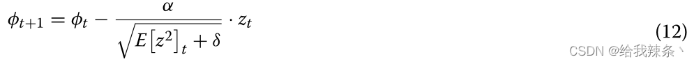 在每一个时间步t,下面每个φt参数的RMSprop更新: