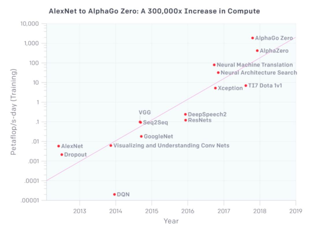与此同时,每年出现的ML模型对算力的要求成指数增长。见下图: