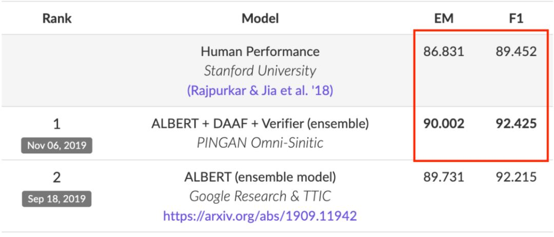 SQuAD Leaderboard:https://rajpurkar.github.io/SQuAD-explorer/