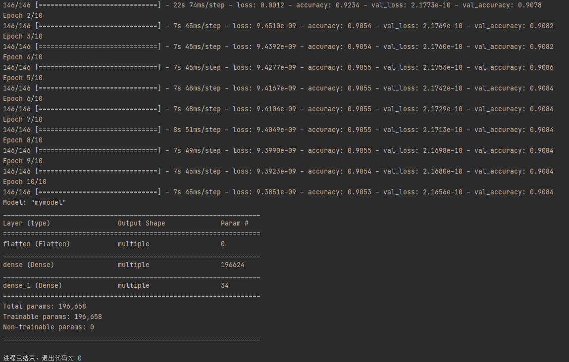 实例化后,利用compile配置,并使用fit进行训练,最后打印网络信息