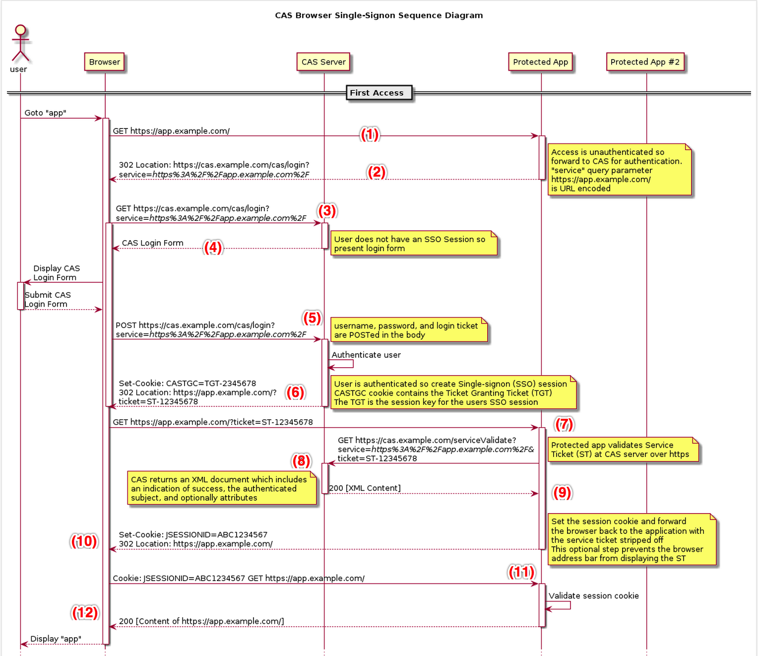 CAS (4) —— CAS浏览器SSO访问顺序图详解(CAS Web Flow Diagram by Example)