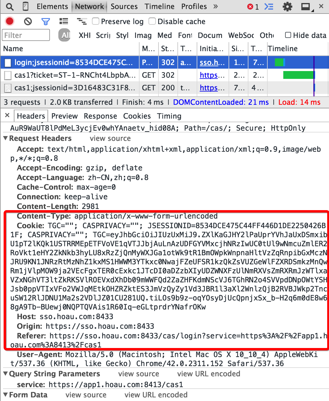 可以注意到此时是用POST方法将用户名和密码,包括登陆的Ticket一起发到CAS服务器