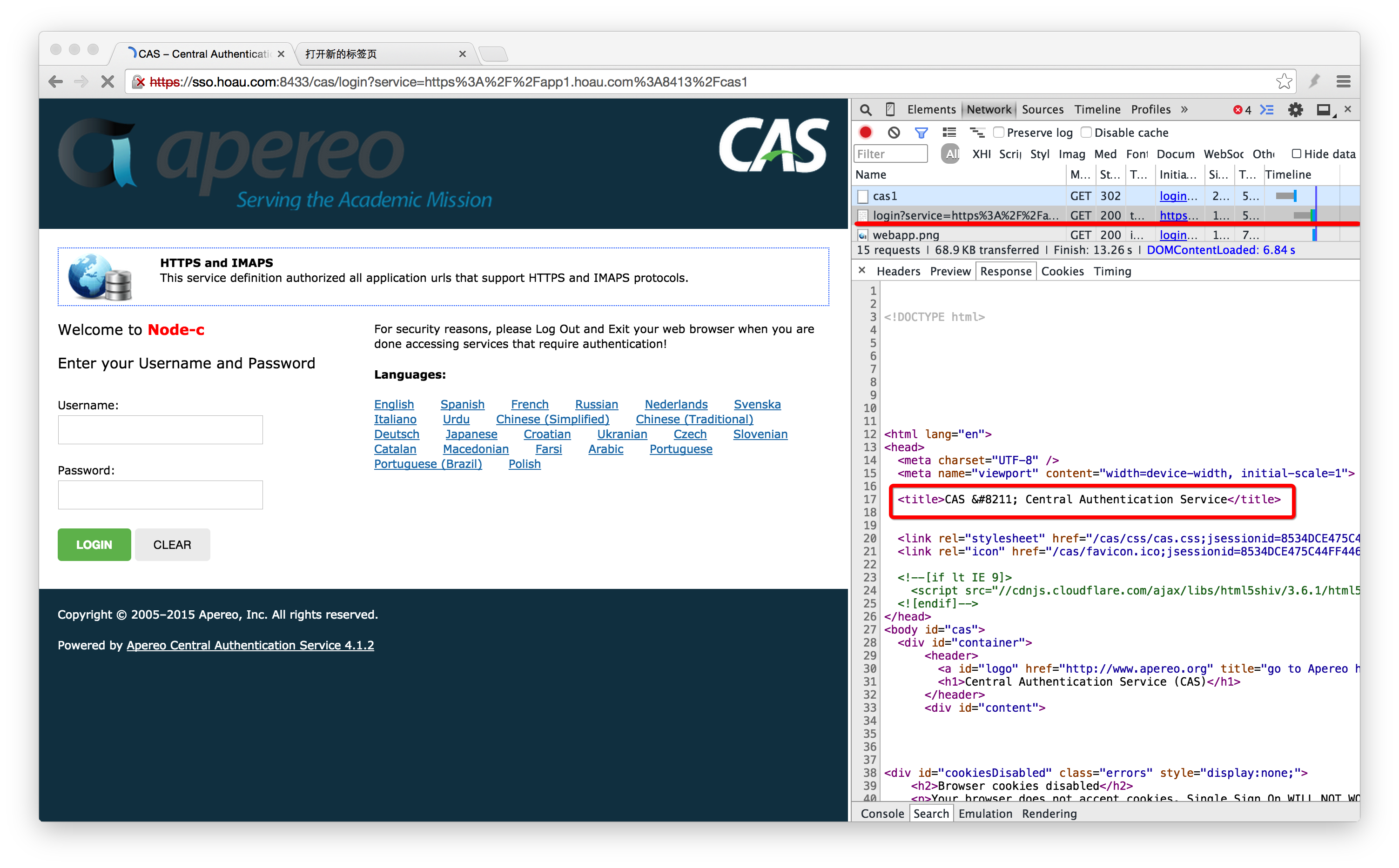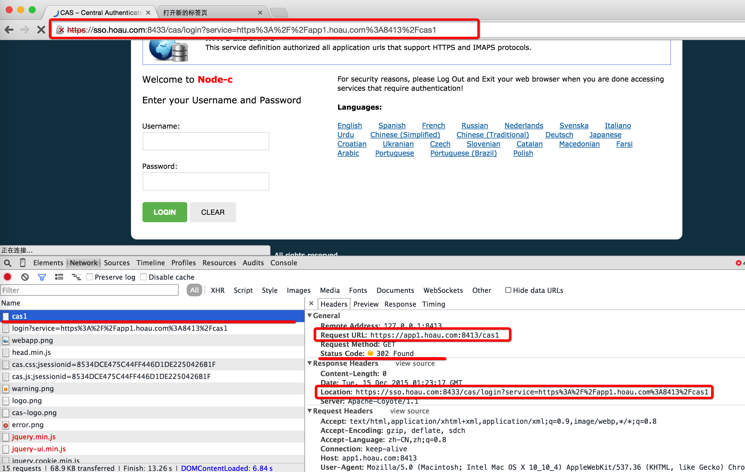 (1)用户首次访问(GET: https://app1.hoau.com:8413/cas1)