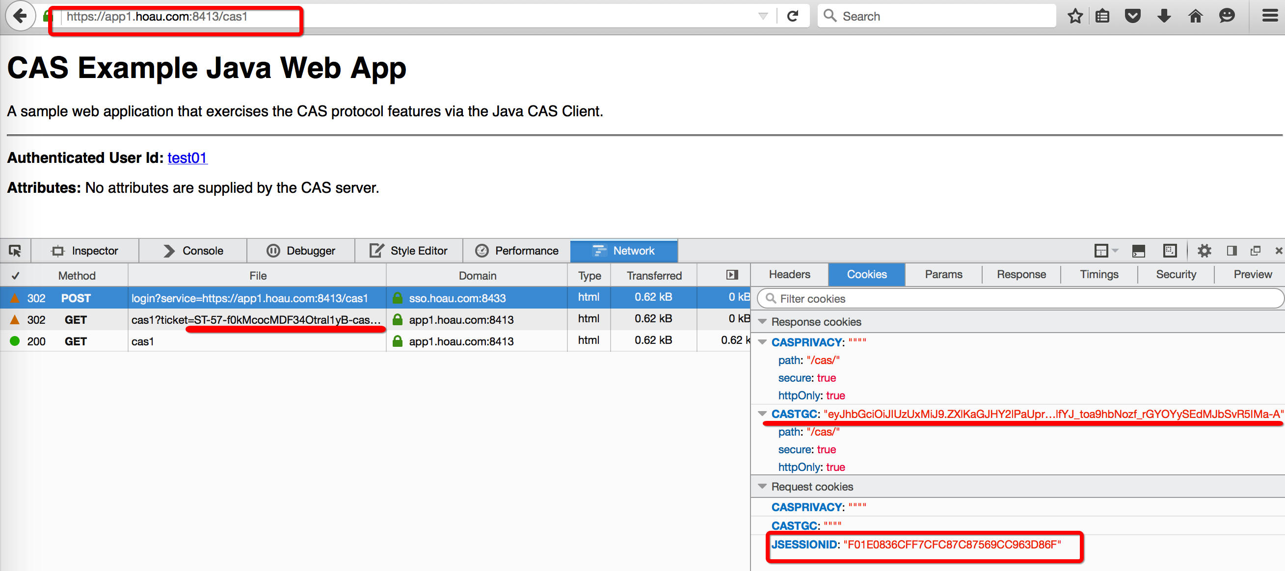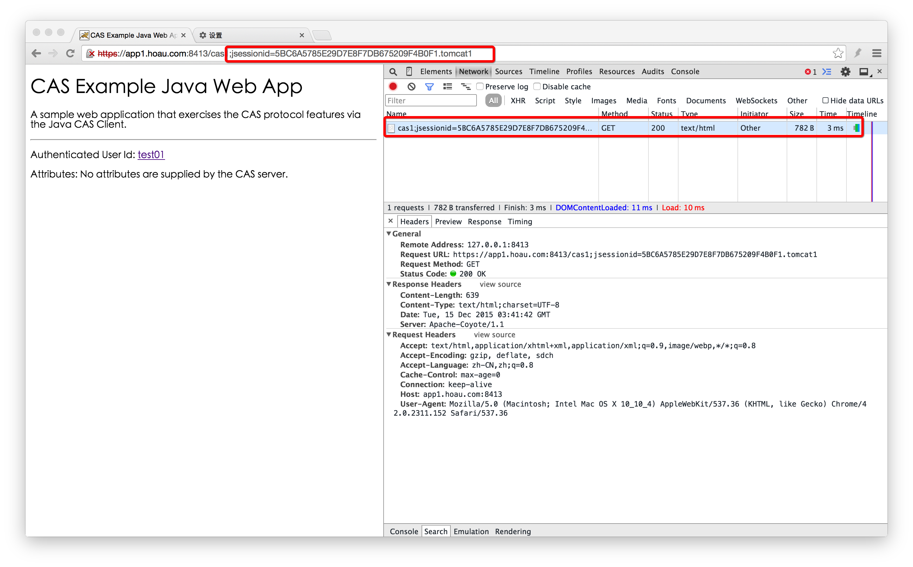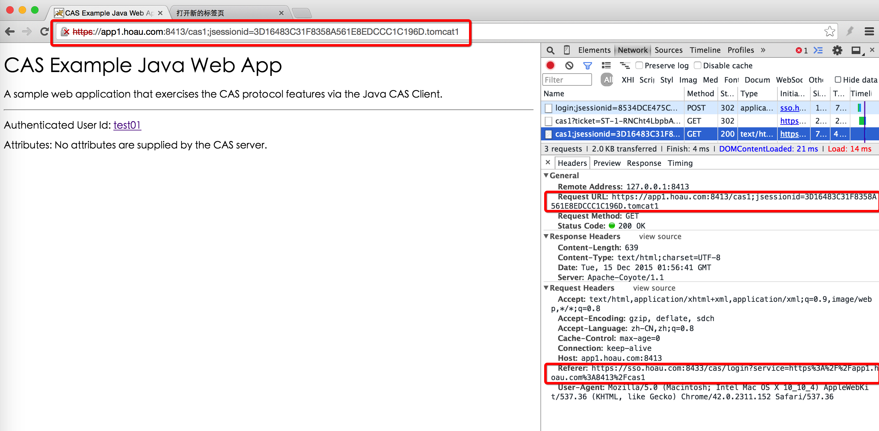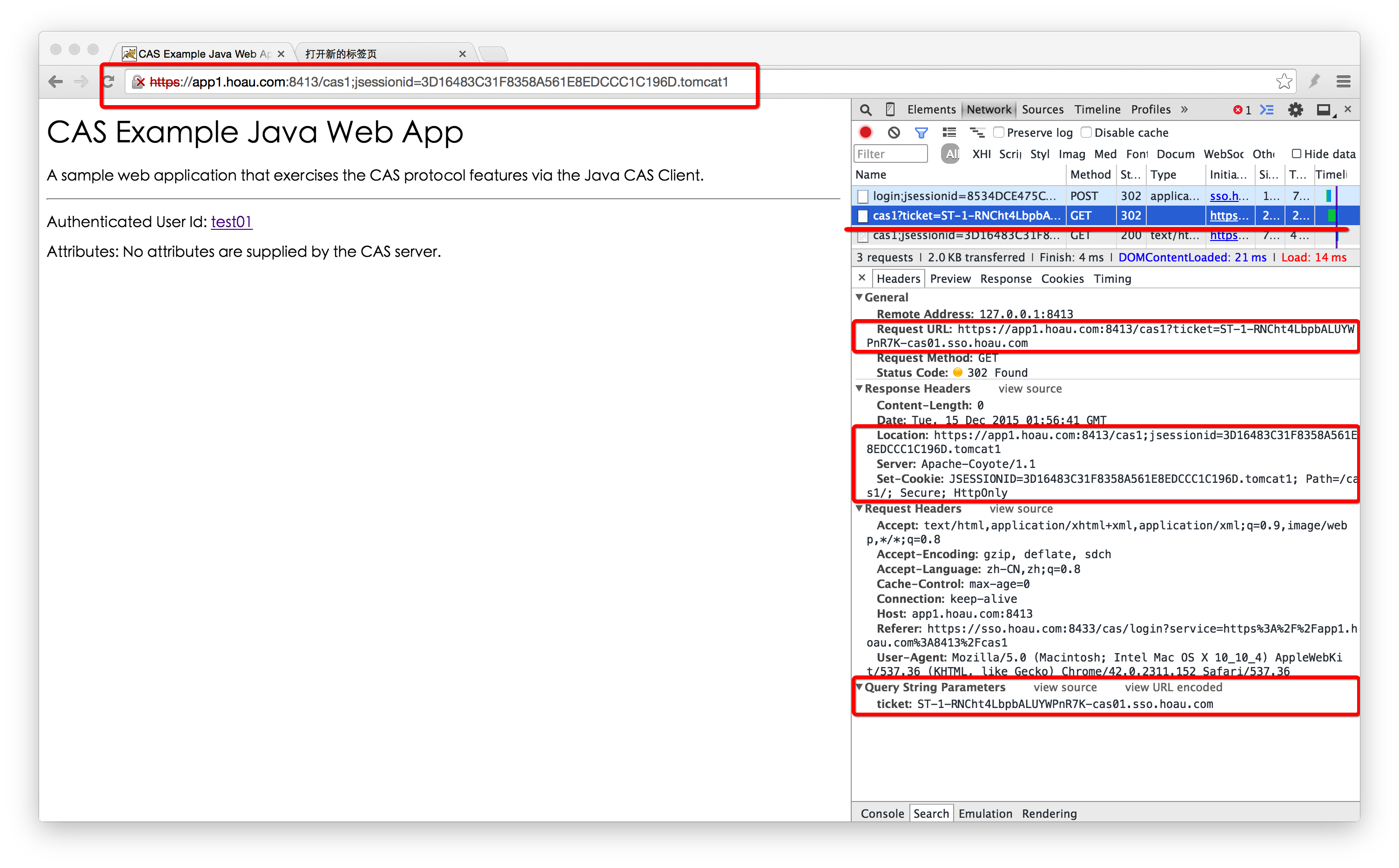 通过“302 Found”将浏览器重定向到Protected App的目标页面,同时设置Cookie的JSESSIONID