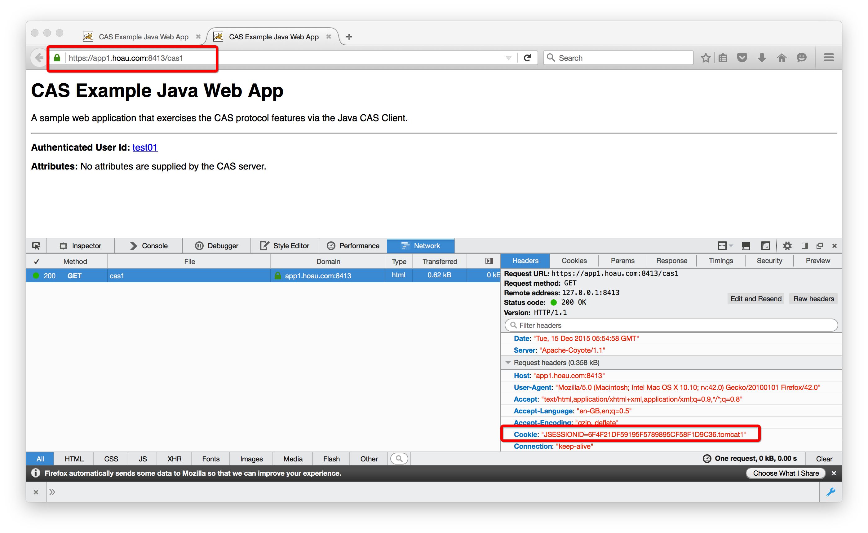 (1)浏览器带第一次认证后的Cookie:JSESSIONID访问Protected App