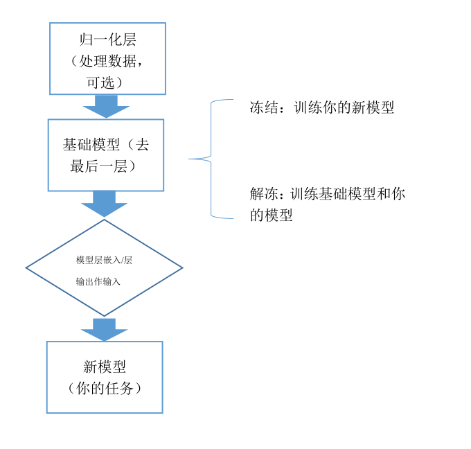 在构建自己的新模型时,需要根据情况确定迁移学习方式(上文提到),这里为第一种。