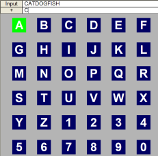 2004年,Guan等人首先提出单项显示(Single Display, SD)刺激范式,并将该范式应用到 P300字符拼写实验中,该系统的刺激界面如下图所示,36个字符,其中26个英文字符,10个阿拉伯数字字符,整个界面排列成6 x 6行列矩阵。每个字符随机的闪烁,与经典的刺激范式不同,不是按照行列闪烁,即当某个字符闪烁结束一段时间后,下一个字符才开始闪烁。完成一个字符输入,需要36次字符的闪烁。同样受试者需要默数字符的闪烁次数,这样为加强受试者的注意力。一个round包含36次的闪烁,即每个字符的输入需要一个round,目标字符出现的概率为1/36,这样在一次round之后,P300字符输入系统就可以确定受试者想要输入的目标字符。