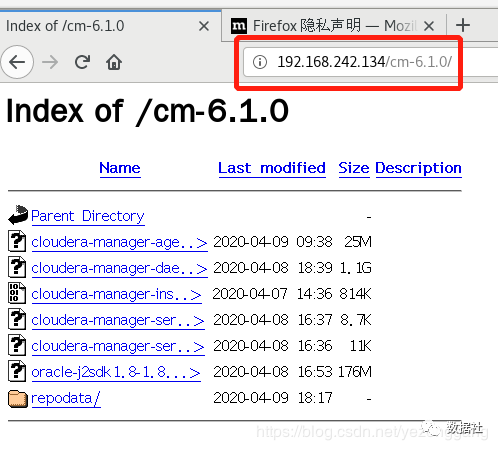 完成后,可通过rul查看文件,确保repodata文件夹一定要成功生成,不然后续无法通过!!!!