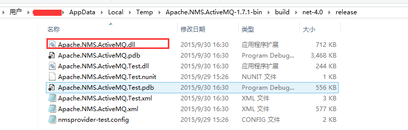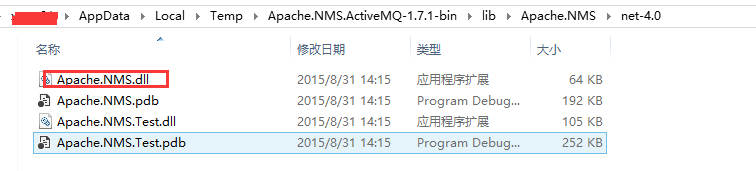 ActiveMQ官方网站下载最新版的Apache.NMS,网址:http://activemq.apache.org/nms/download.html,需要下载Apache.NMS和Apache.NMS.ActiveMQ两个bin包
