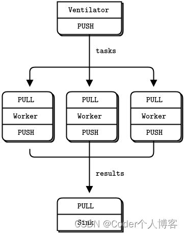1、Ventilator:任务发布器会生成大量可以并行运算的任务。