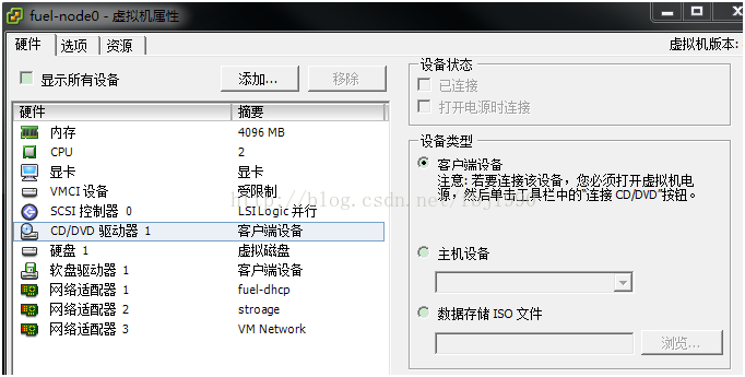 3、创建2台fuel-node虚拟机,选择fuel-dhcp、storage、VM Network网卡,不需要设置从光驱启动