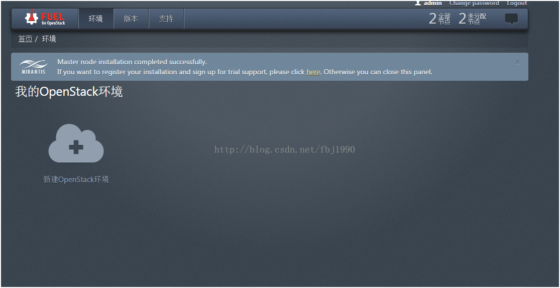 5分钟后,从Fuel dashboard上即可以看到自发性的节点: